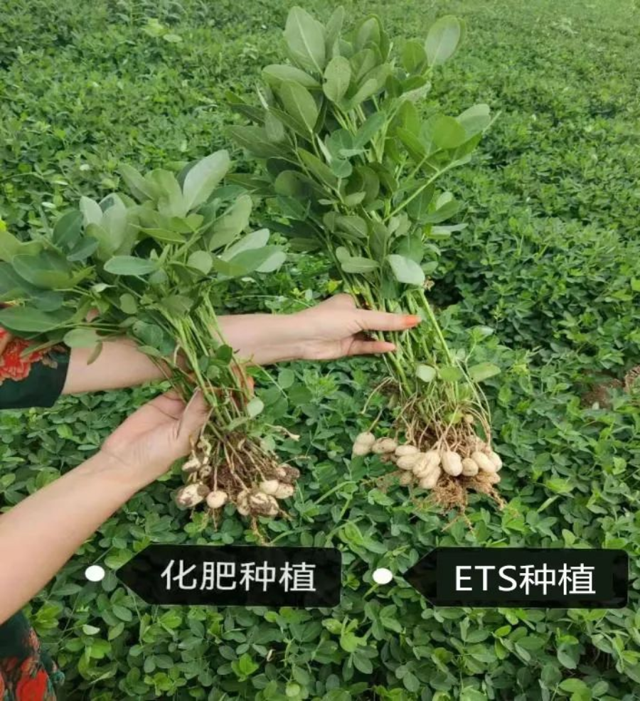 隨后參觀人員到土壤改良實(shí)驗(yàn)田查看了花生生長(zhǎng)情況,應(yīng)用ETS技術(shù)種植的花生同樣晚一周種植,但明顯優(yōu)于用普通化肥種植的花生,植株更高、長(zhǎng)勢(shì)旺根系更發(fā)達(dá)、掛果多果實(shí)更飽滿,郭寺村支部書(shū)記姚國(guó)成表示,水谷農(nóng)業(yè)公司在我村托管500畝玉米和花生長(zhǎng)勢(shì)喜人,豐收在望,村子里很多當(dāng)初未托管土地的村民看到莊稼長(zhǎng)勢(shì)對(duì)比后都感到十分后悔,紛紛表示等到秋收后也要將自己的土地進(jìn)行托管。